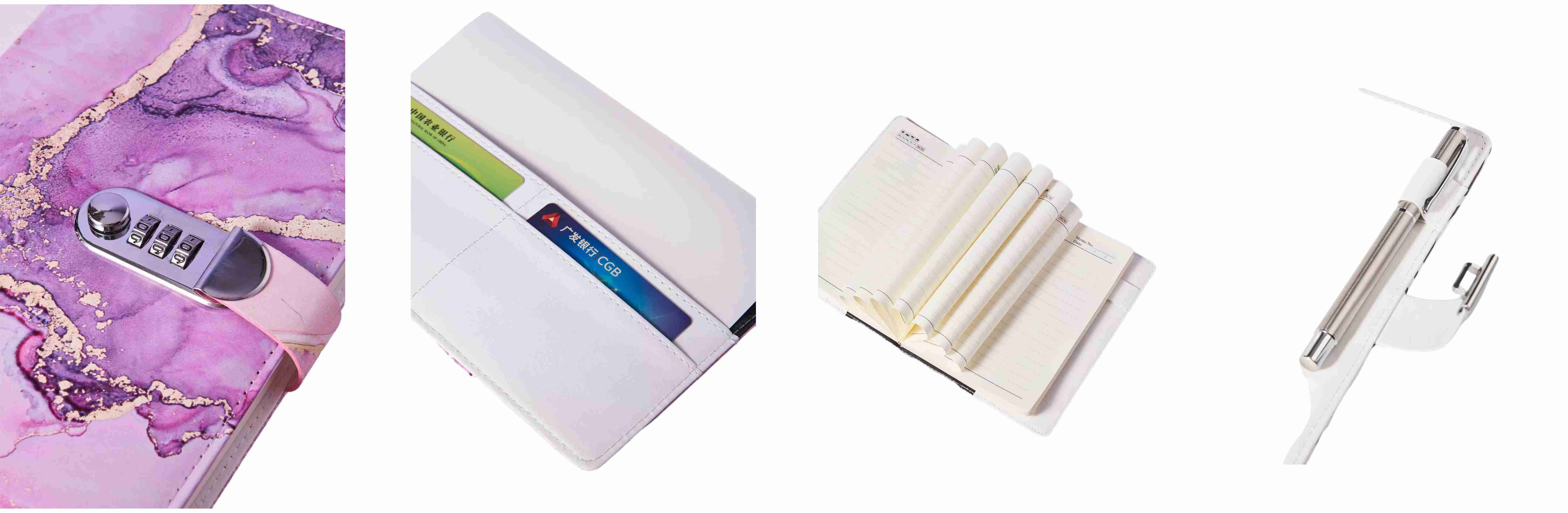 • समृद्ध आंतरिक पृष्ठ: शासित आंतरिक पृष्ठ स्याही रक्तस्राव के बिना सुचारू लेखन प्रदान करते हैं। वे स्पेनिश, अंग्रेजी, पुर्तगाली, रूसी, इतालवी, अरबी, आदि सहित बहु-भाषा अनुकूलन का भी समर्थन करते हैं, अंतर्निहित कार्ड स्लॉट के साथ, बैंक कार्ड और सदस्यता कार्ड को स्टोर करना आसान है-एक नोटबुक और कार्ड धारक दोनों के रूप में सेवा करना, ऑन-द-गो उपयोग के लिए एकदम सही।